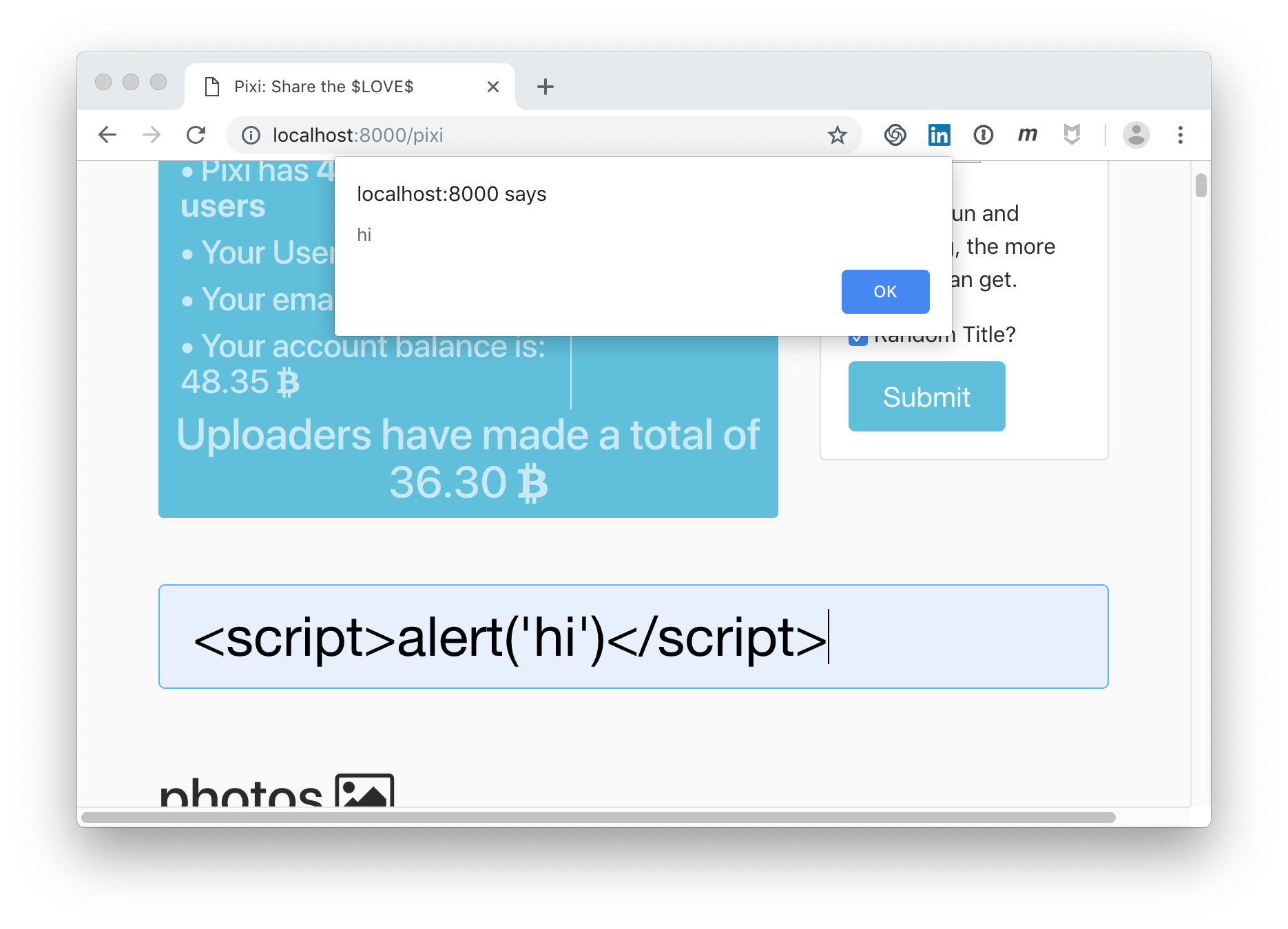 One of the application vulnerabilities is that the search field is vulnerable to reflected XSS attacks: